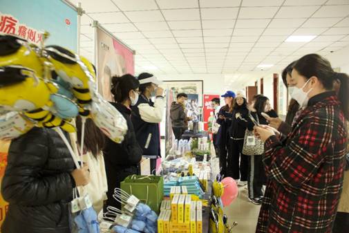 活动开始前,负责活动的同学们便布置好场地,为活动的顺利开展做好充足的准备。同学们在展位前积极互动,赢取纪念品。