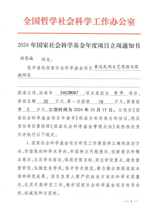 刘思诚副教授获批2024年度国家社会科学基金项目